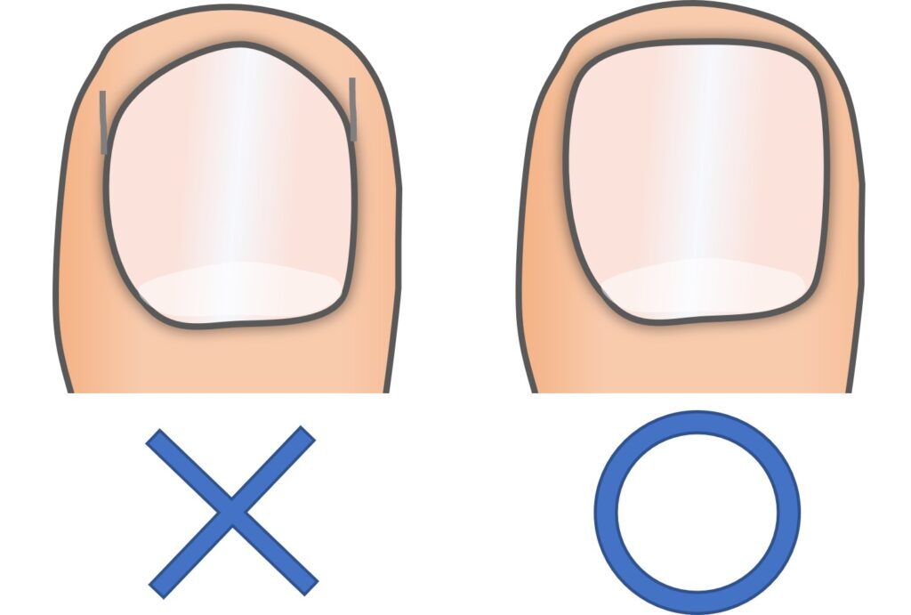丸く切りすぎると、角が皮膚に入り込みやすくなります。