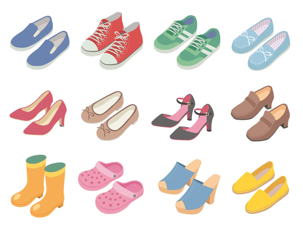 お店で試し履きをして、**足の横幅(ワイズ)**が合うものを選びましょう。